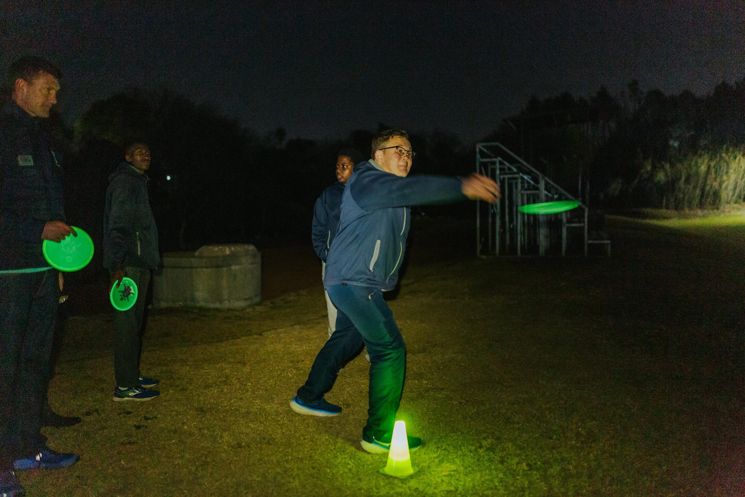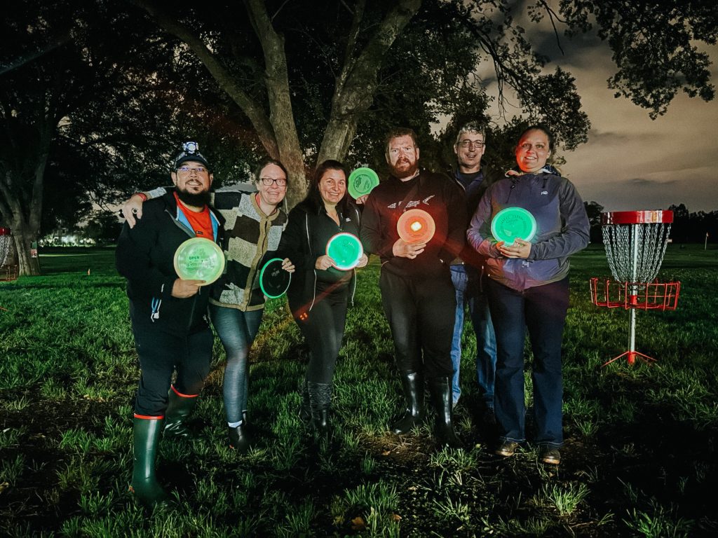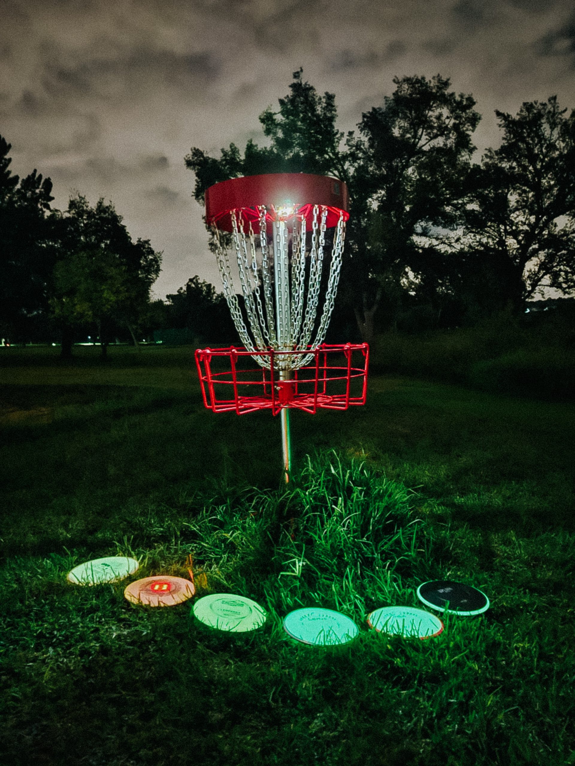 Looking for a fun, unforgettable experience after dark? Our Glow Disc Golf rounds bring the excitement of disc golf to your school, company, or event — with a luminous twist!